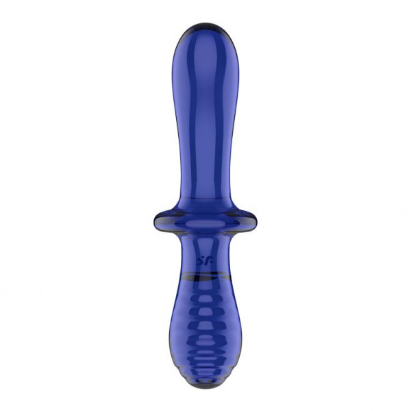 Фаллоимитатор двухсторонний "Satisfyer Double Crystal" супер рельеф, синее стекло