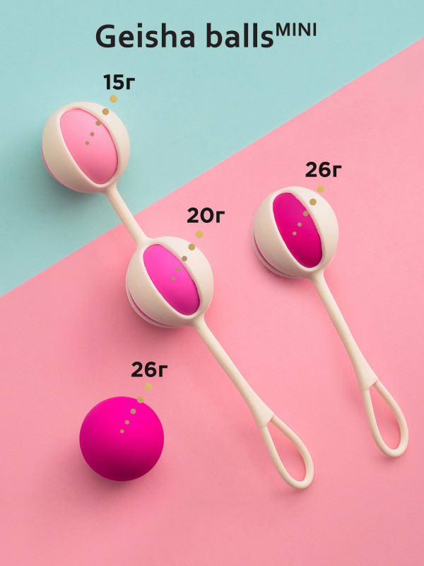 Разный вес шариков - 15, 20, 26, 26г позволяют проводить тренировку, постепенно увеличивая нагрузку, что приводит к потрясающим результатам! Кроме того, добившись определенных результатов, Вы сможете использовать шарики самостоятельно, без сцепки, а это уже уровень настоящей Гейши!